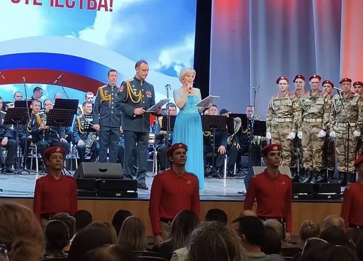 На сцене выступали Военный оркестр штаба Южного ордена Жукова округа войск национальной гвардии Российской Федерации и музыканты Росгвардии, создавая особую атмосферу торжественности и уважения к воинскому служению.