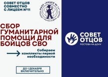 Безопасность на каникулахДрузья, Совет отцов города Ростова-на-Дону запускает сбор гуманитарной помощи для бойцов СВО, поступающих в госпитали после ранений.