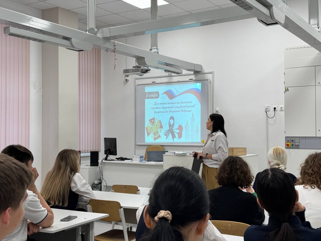 Советник директора по воспитательной работе лицея, Ксения Игоревна Бирюлина, провела для лицеистов Урок мужества «Подвиг во имя жизни».