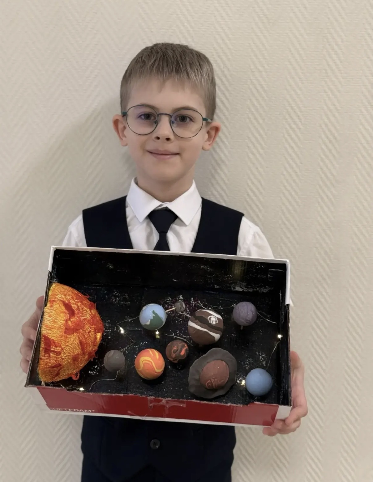 Щербаков Богдан сделал целую солнечную систему, которая освещается настоящими огоньками.