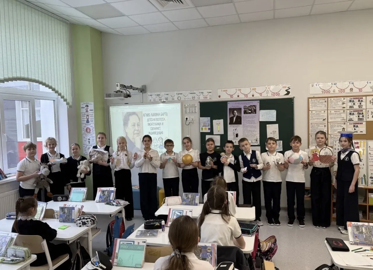 В честь юбилея замечательной детской писательницы Агнии Львовны Барто в 4 «В» прошел необычный урок чтения. Этот день запомнится ребятам надолго, ведь они смогли не только вспомнить любимые произведения, но и проявить свои творческие таланты.