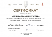 МАОУ «Лицей № 11» уже более пяти лет активно участвует в Всероссийской программе «Школьные музеи Победы», демонстрируя высокие стандарты в области исторического просвещения и военно-патриотического воспитания. В ходе форума Оксана Викторовна активно участвовала в дискуссиях, лекциях и проектных группах, посвященных вопросам сохранения исторической памяти, формированию гражданской идентичности и повышению роли школьных музеев в современном образовательном процессе.