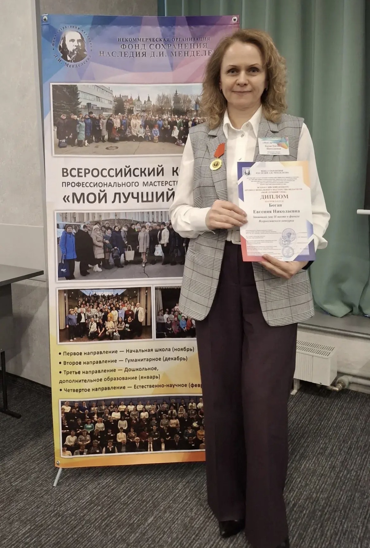 За выдающиеся заслуги и вклад в развитие образования призер была удостоена не только диплома, но и памятной медали «За службу образованию». Эта высокая награда является свидетельством признания ее профессионализма на федеральном уровне.