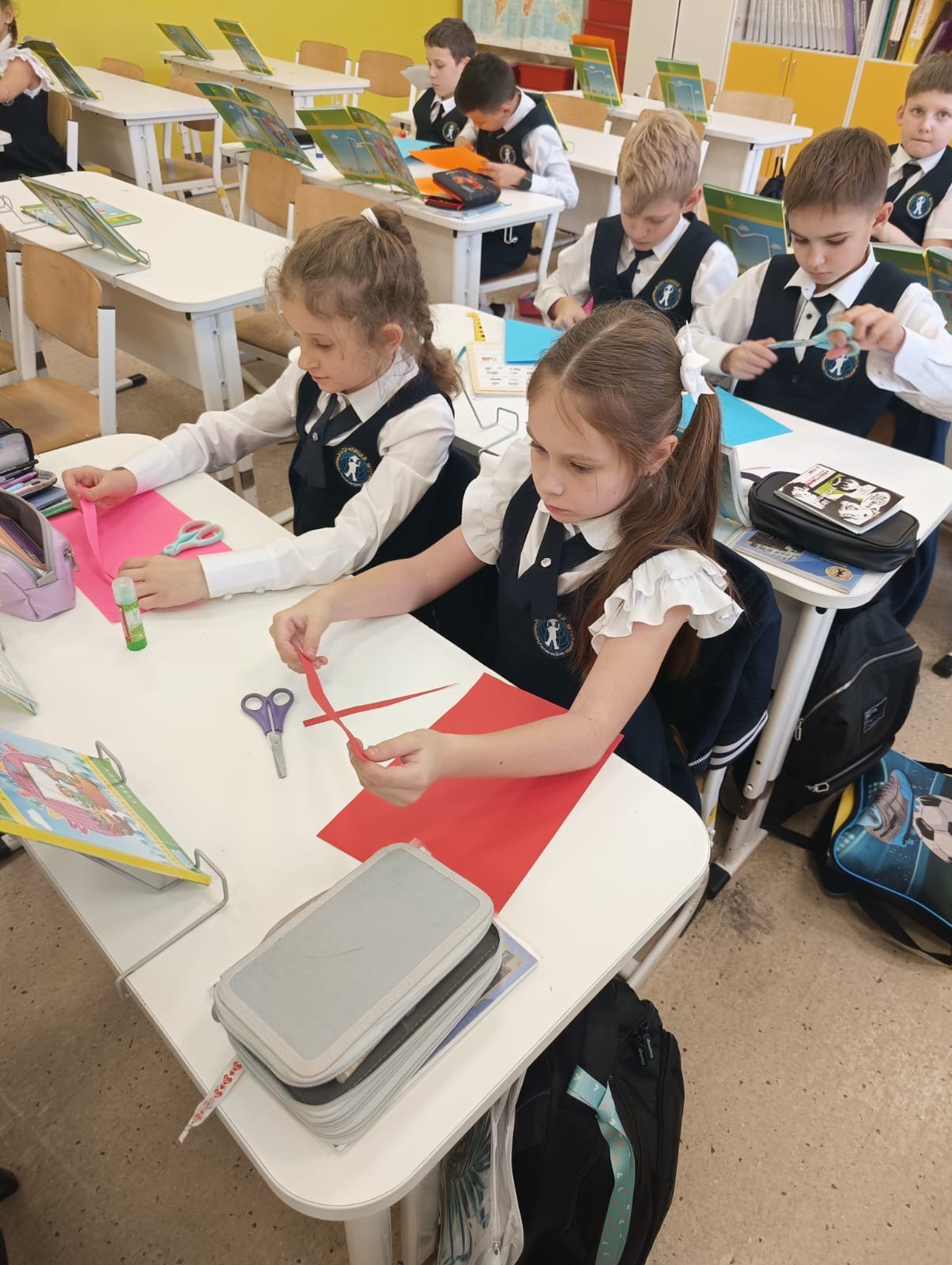 На занятии учащиеся познакомились с уникальными свойствами ленты Мëбиуса и научились создавать её модель.