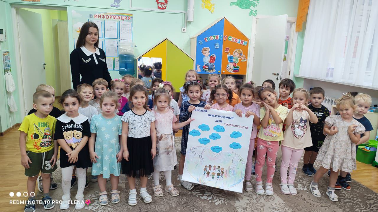 В средней группе «Солнышко» ребята узнали значение слова «толерантность» и выполнили коллективную работу «Международный день толерантности».