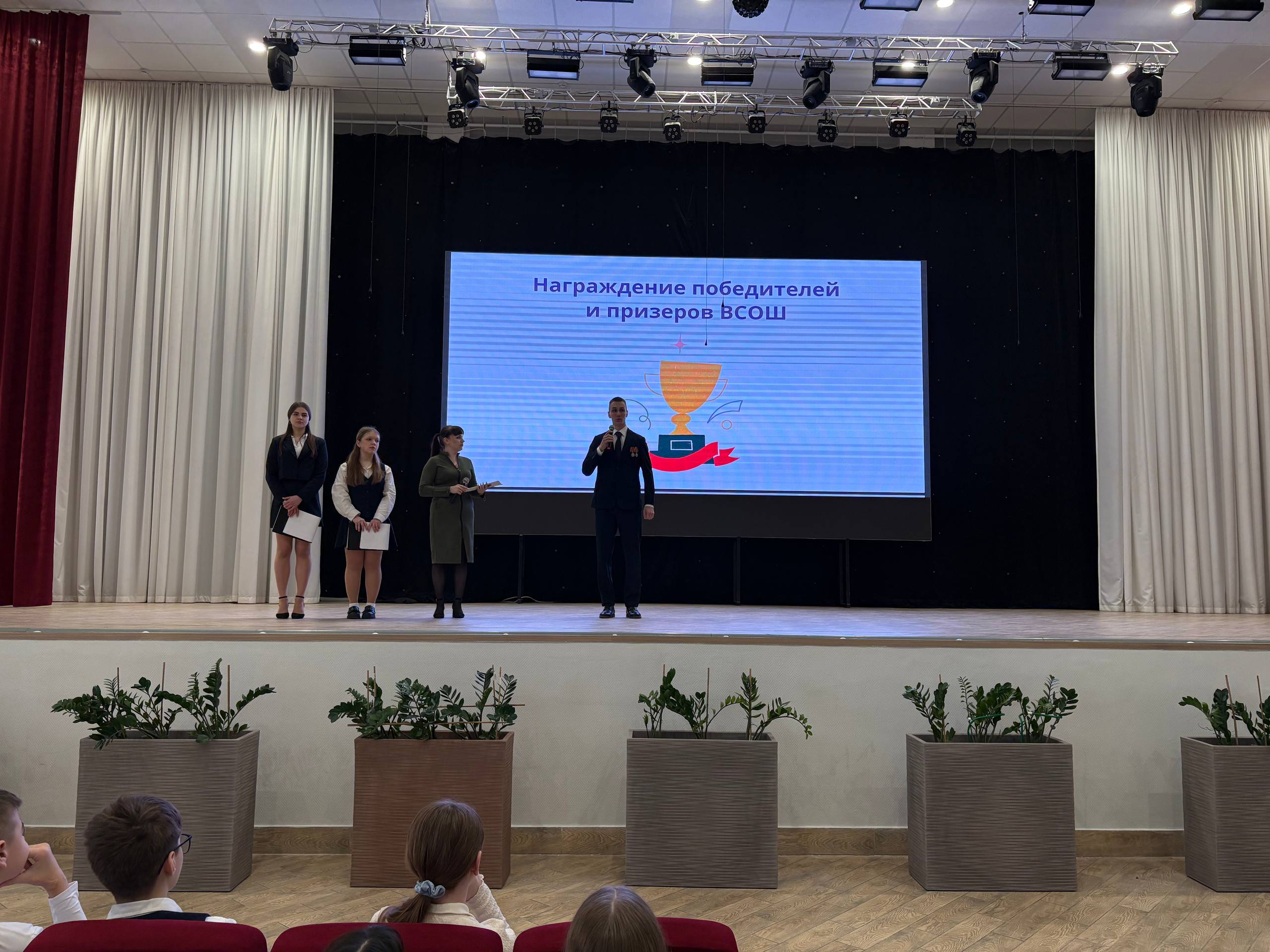 Выпускник лицея и участник специальной военной операции Михаил Волков совместно с заместителем директора Юлией Юрьевной Фиолимоновой наградили победителей и призёров муниципального этапа Всероссийской олимпиады школьников. Награды за интеллектуальные достижения лицеисты получили из рук защитника Отечества.