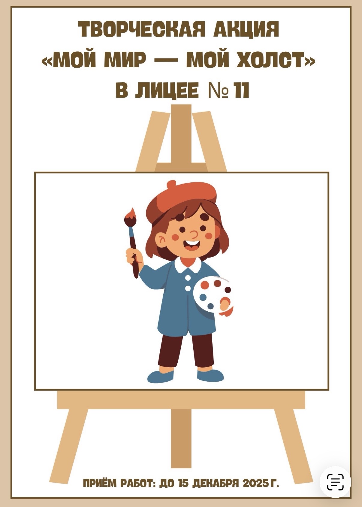 В честь Международного дня художника ученическое самоуправление лицея № 11 запускает творческую акцию «Мой мир — мой холст». Приглашаем всех желающих проявить талант и поделиться своим видением мира через искусство!