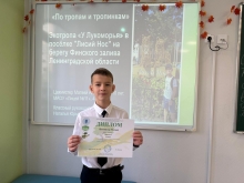 Матвей представил своё путешествие по экотропе «У Лукоморья» в посёлке «Лесий Нос» на берегу Финского залива Ленинградской области. Его презентация получилась очень увлекательной и информативной.