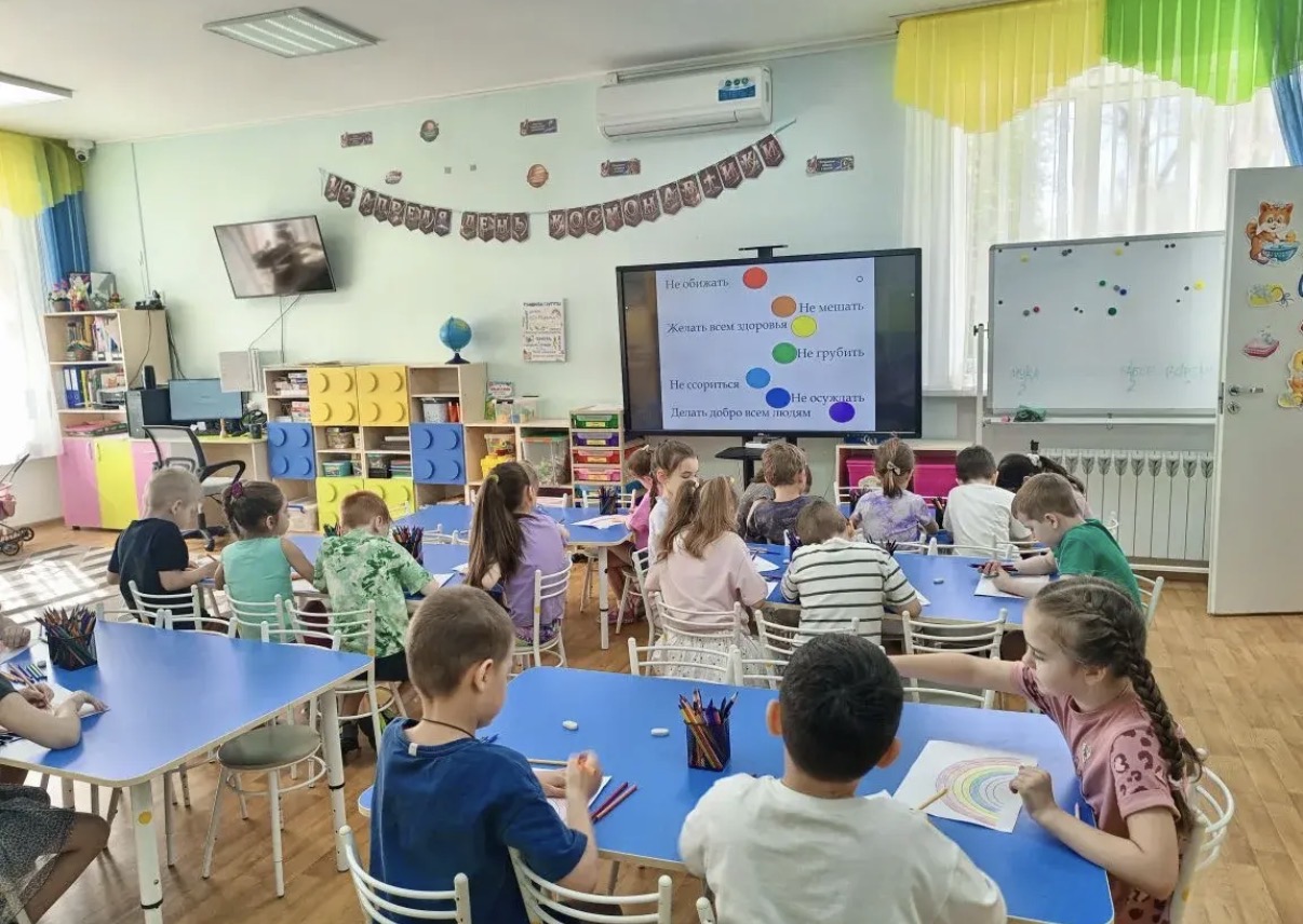 Воспитанники подготовительных групп «Дружный экипаж» и «Семицветик» прослушали рассказ В.Осеевой «Хорошее», разобрали поведение мальчика Юры, придумали продолжение истории. В конце занятия каждый нарисовал свою радугу с добрыми правилами.