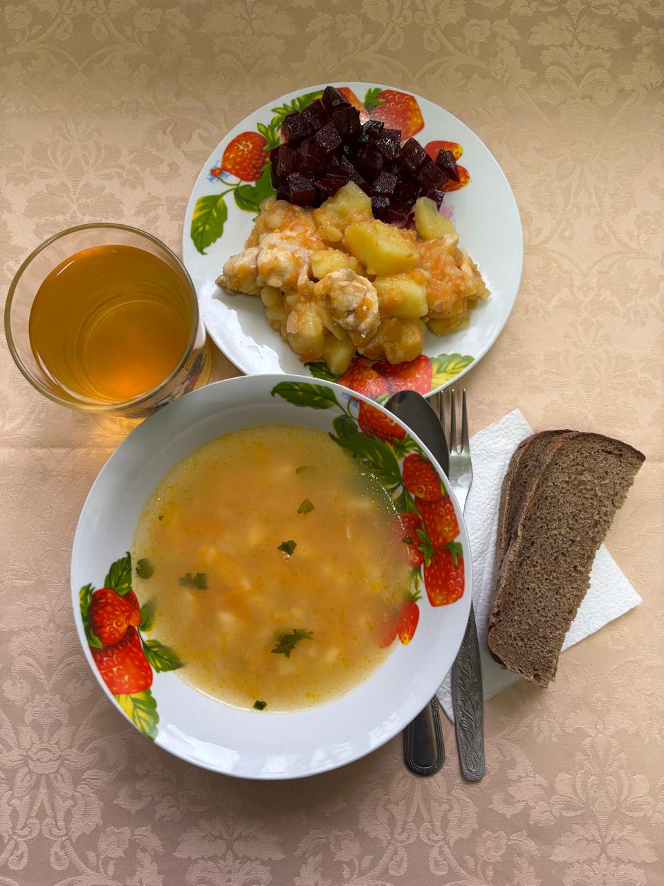 Ответ: Здравствуйте. Питание детей организовано согласно СанПиН 2.3/2.4.3590-20, где определен временной промежуток питания. Время приема пищи с 8.00- 12.00 это завтрак, после 12.00 – обед. Завтрак включает в себя закуску (овощи, сыр, масло), каша или овощное, или яичное, или творожное, или мясное, или рыбное блюдо и напиток. А также в завтрак рекомендуется выдавать фрукты. Обед включает в себя салат или овощи порционно, суп, второе блюдо, напиток. Дети, которые работают в первую смену – получают завтрак, а во вторую – обед.