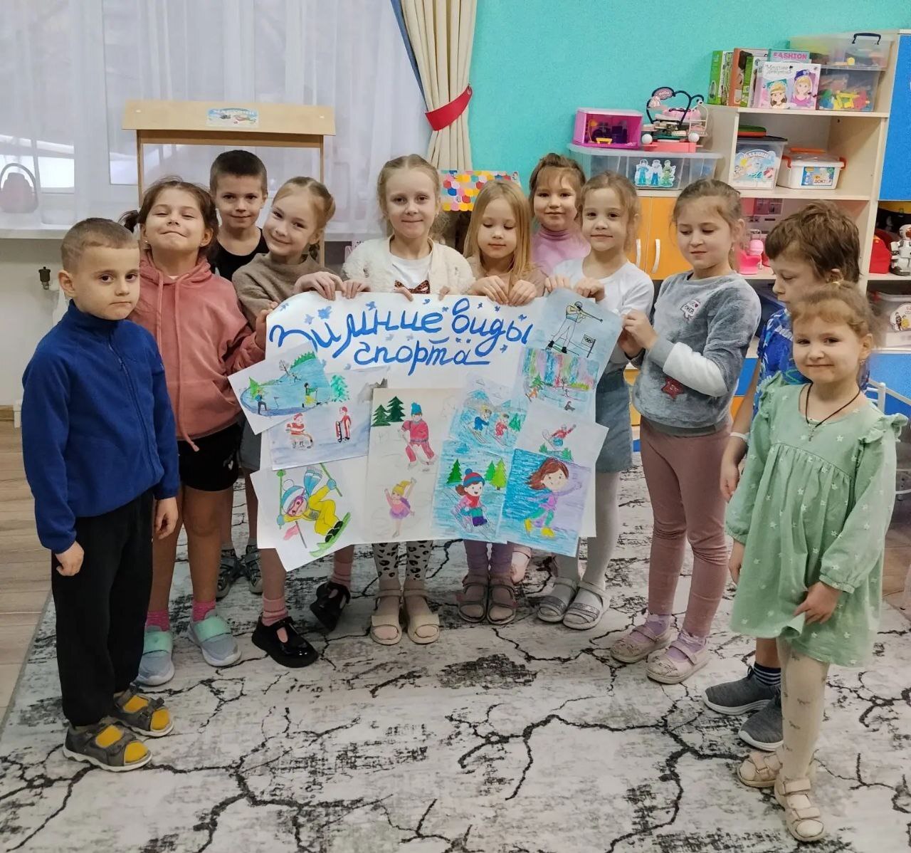 В подготовительной группе 6 «Дружный экипаж» ребята рассказали о своих любимых зимних забавах; поиграли в д/и  «Зимние игры и забавы»; нарисовали зимние виды спорта. В конце занятия сделали газету «Зимние виды спорта», используя свои рисунки.